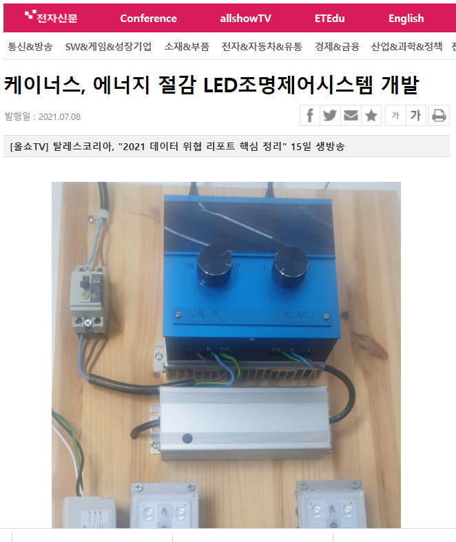 주)케이너스가 기존 전선을 이용하여 에너지절감과 디밍조절이 가능항